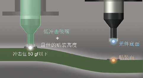 量算出的貼裝面上,可防止壓入過量或空中釋放。 貼裝。因為采用逐個吸取的方式吸取元件并對其 進行