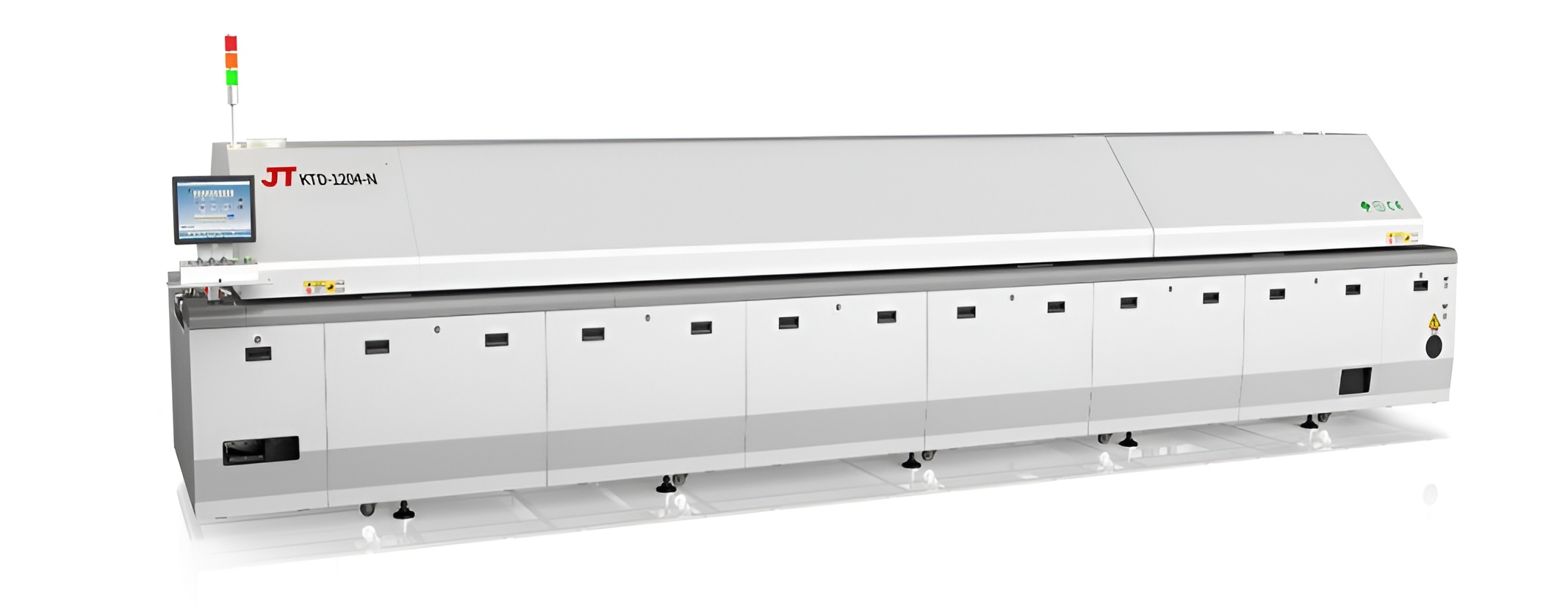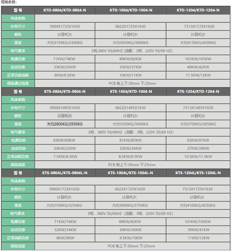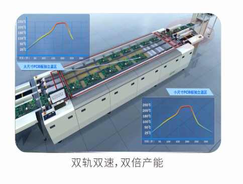勁拓KT系列高端回流焊爐 ● 高產(chǎn)能低能耗,全新熱工學管理系統(tǒng),有效降低成本 ● 專業(yè)應(yīng)對高速生產(chǎn)及高精密度PCB封裝工藝 ● 控溫能力強,高控溫精度 ● 超強快速升降溫能力 ● 全程氮氣定量可控,各溫區(qū)獨立閉環(huán)控制 ● 最新冷卻技術(shù),可選多區(qū)雙面冷卻 ● 新型二段式助焊劑回收系統(tǒng) ● 雙軌雙速,單機成本,雙倍產(chǎn)能,節(jié)能65%。